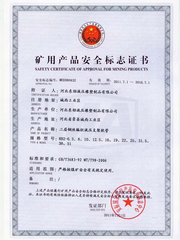 • 鋼編管?chē)?guó)際標(biāo)準(zhǔn)產(chǎn)品標(biāo)志證書(shū)